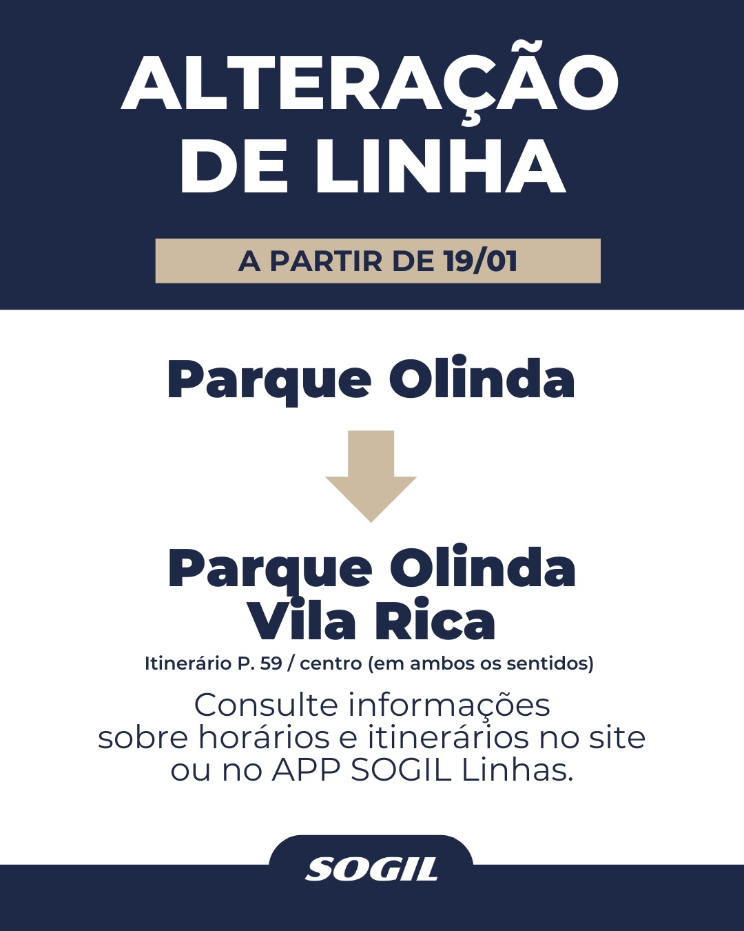 Alteração de Linha Parque Olinda Vila Rica a partir do dia 19/01