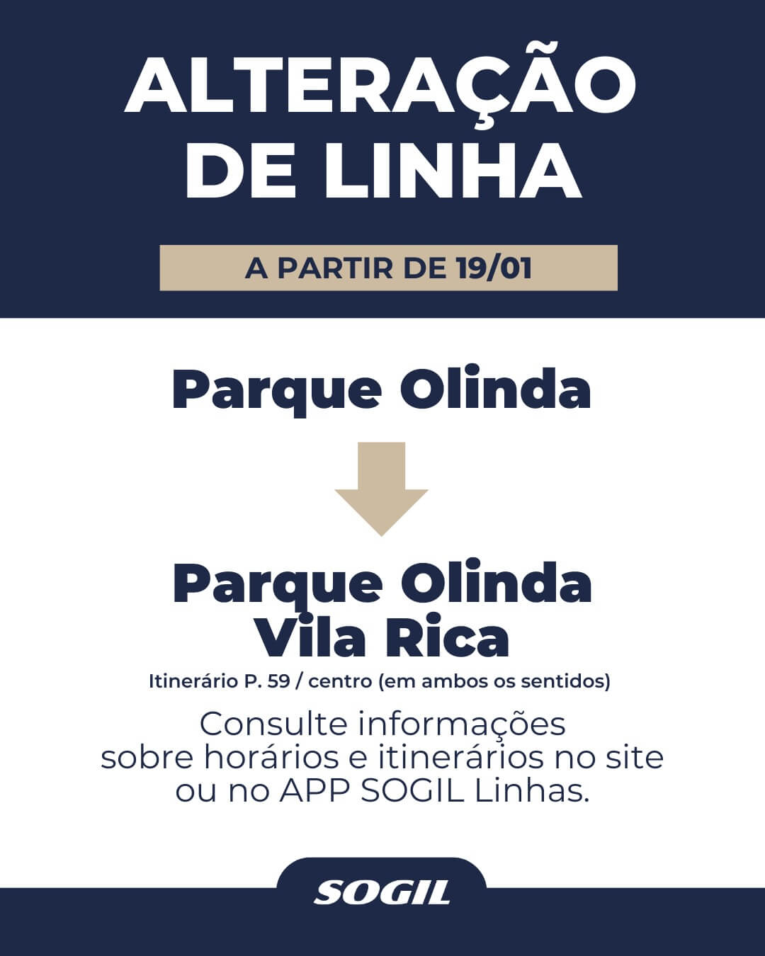 Alteração de Linha Parque Olinda Vila Rica a partir de 19/01