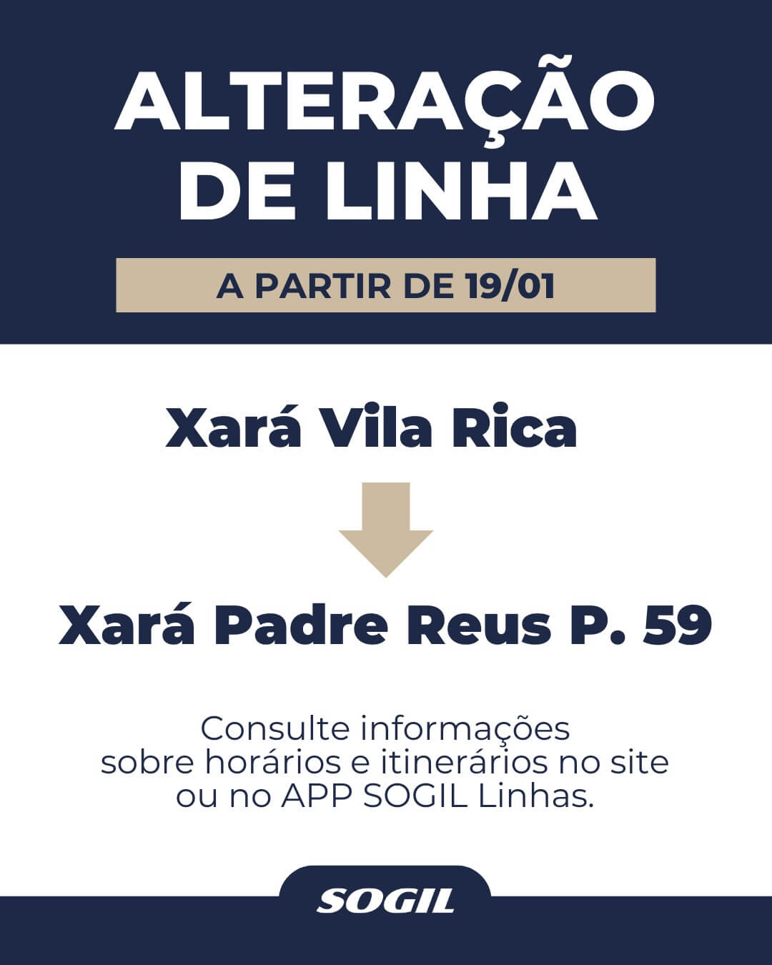 Alteração de Linha Xará Padre Reus P. 59 a partir de 19/01